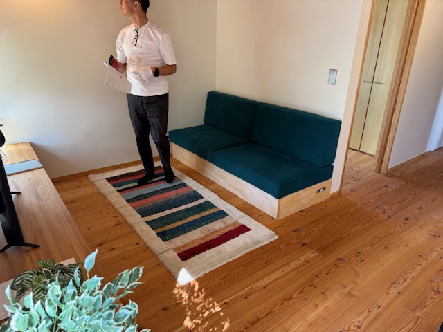 - 過去、他社モデルハウスでも造作ソファーを体験してきましたが、多くは既製品ソファーの方が快適に感じられたものでした。今回のような心地よさを持つ造作ソファーの制作が可能なら、当社も標準仕様として採用したいと強く思いました。