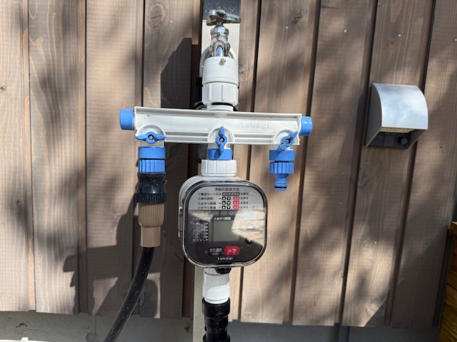 「自動水やり機」は、外の水栓に取り付けて設定するだけで、不在の場合や夏・冬の気候が厳しい場合でも、庭の植栽に自動で水やりしてくれるので、とても便利だと思いました。電源は乾電池なので、外部コンセントが不要なことも、設置のしやすさに繋がると思います。