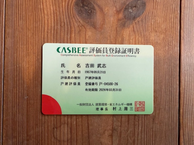 私は2010年、今から15年前に「CASBEE(キャスビー)戸建評価員」の資格を取得しました。