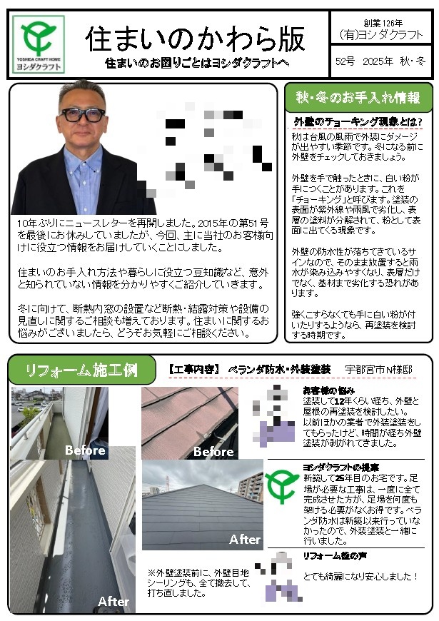 ニュースレターを10年ぶりに再開しました!「住まいのかわら版 52号」