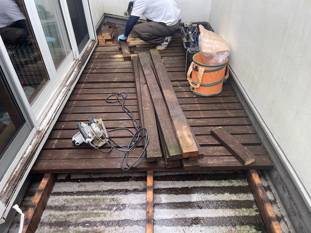 - 地面やバルコニーなど雨水・湿気に近く、かつ雨の方向に対して、板材を垂直に使うため、乾きにくく、変形や腐朽リスクが高めです。
