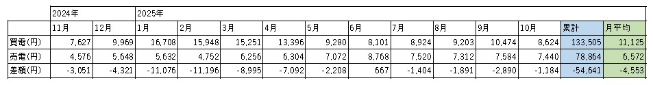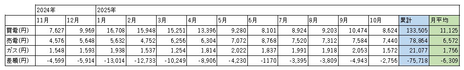 この結果、売電価格よりも買電価格のほうが高くなっています。