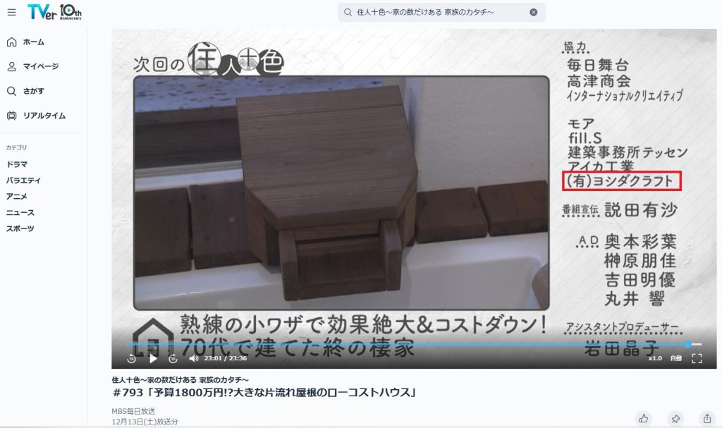 関西の毎日放送で毎週土曜17:00〜17:30に放送されている、注文住宅紹介番組「住人十色」にて、当社のWEB掲載写真が使用されました。