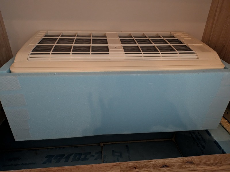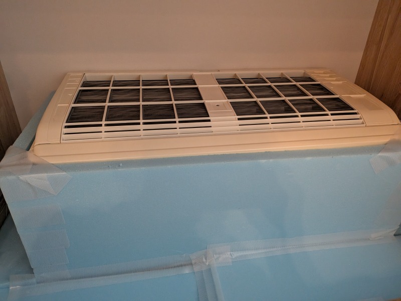 先日のアドバイスを受けて、土曜日に発泡断熱材と格闘しながら、できる限りエアコン周辺を密閉してみました。