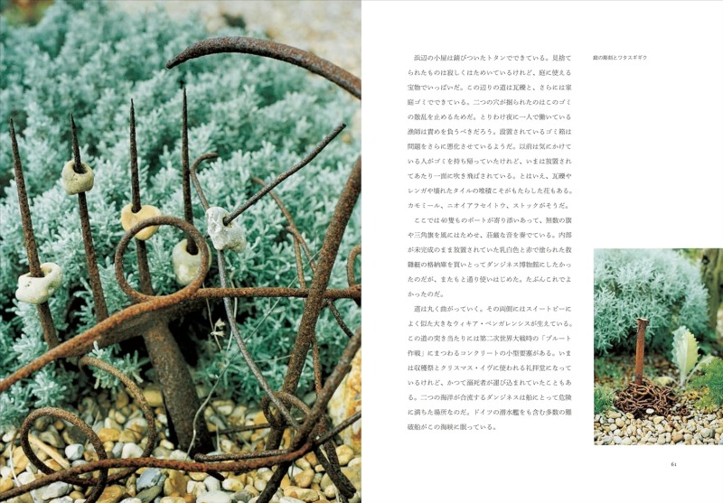 その周囲に作られた庭は、花だけでなく、流木、石、錆びた鉄、貝殻、玉砂利が混ざり合う場所。